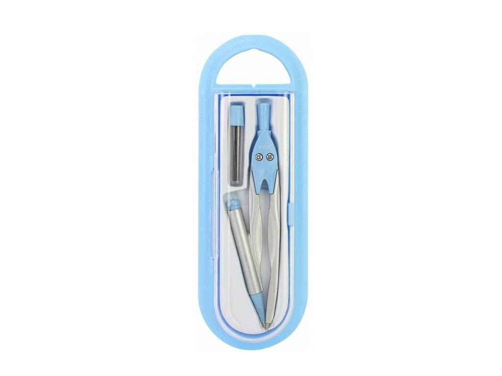 Циркуль, 2 предмети, пенал з лінійкою по периметру, пастельний блакитний
